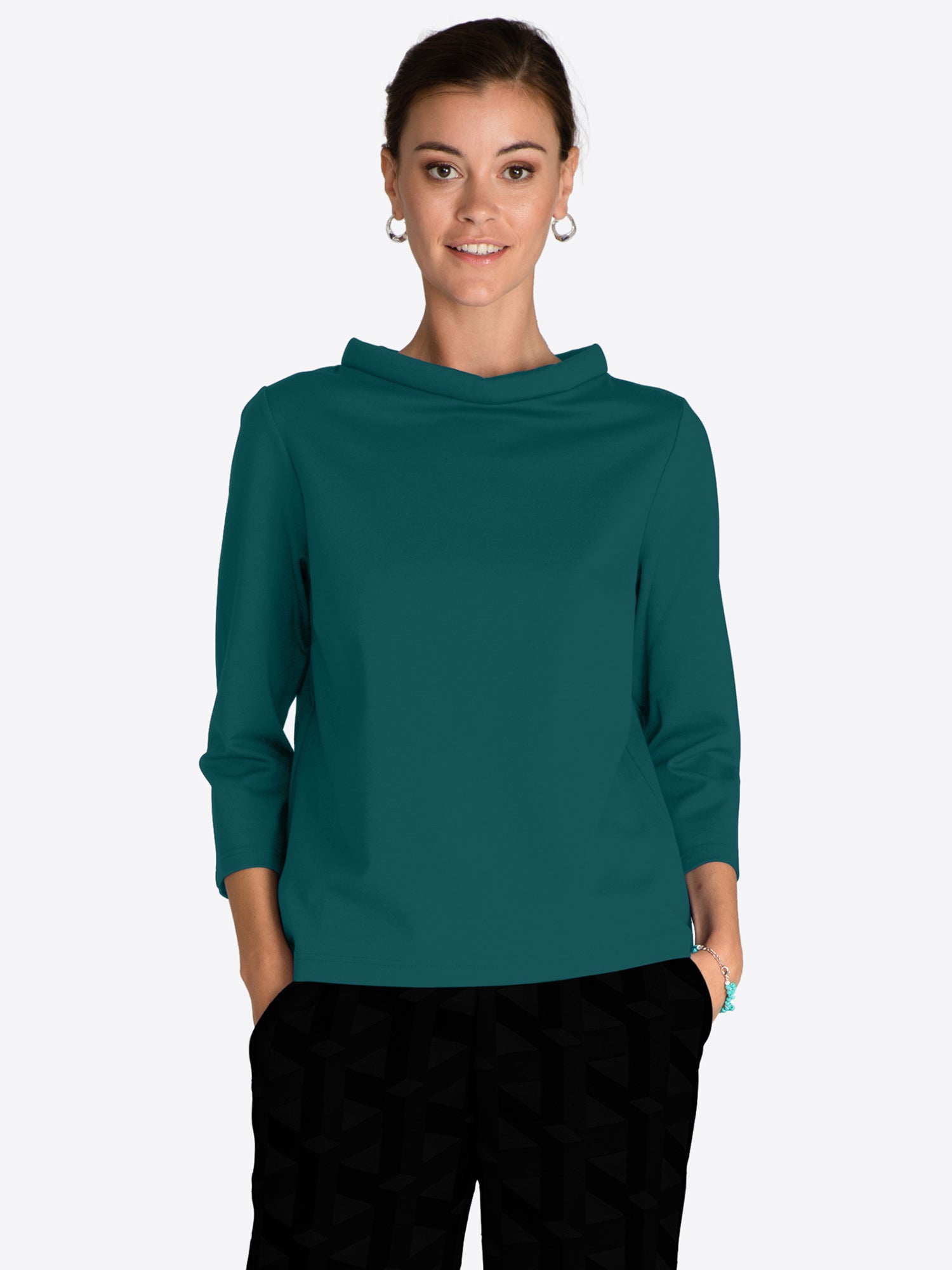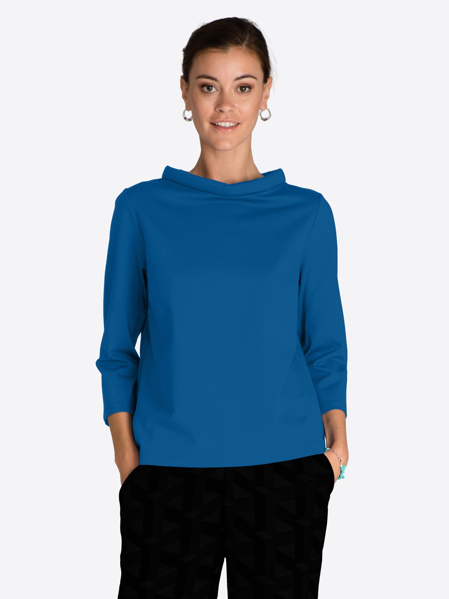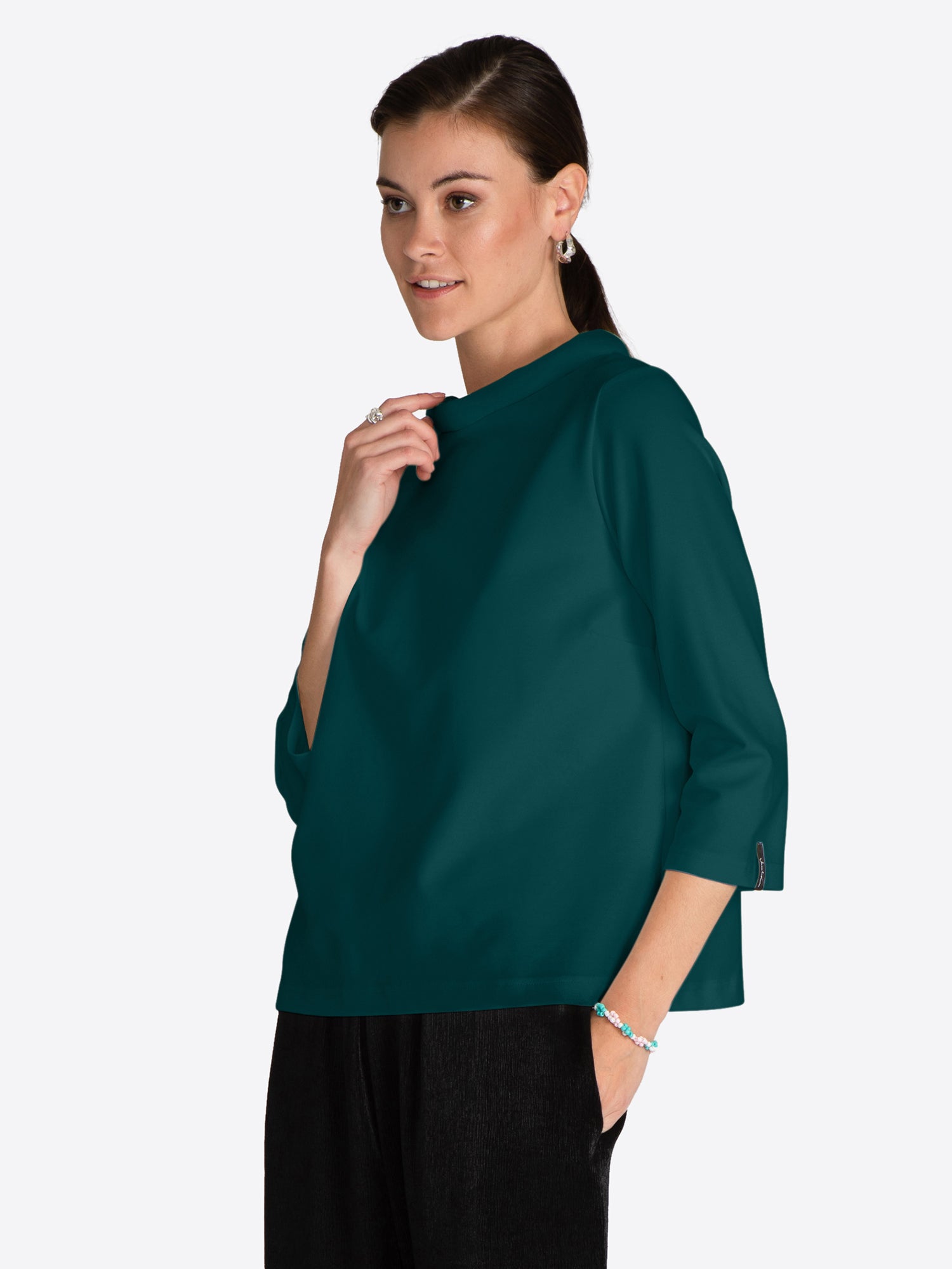 Top in slightly heavier and stretchy quality from Jascha Stockholm Short model with light padded collar and three quarter length sleeve.