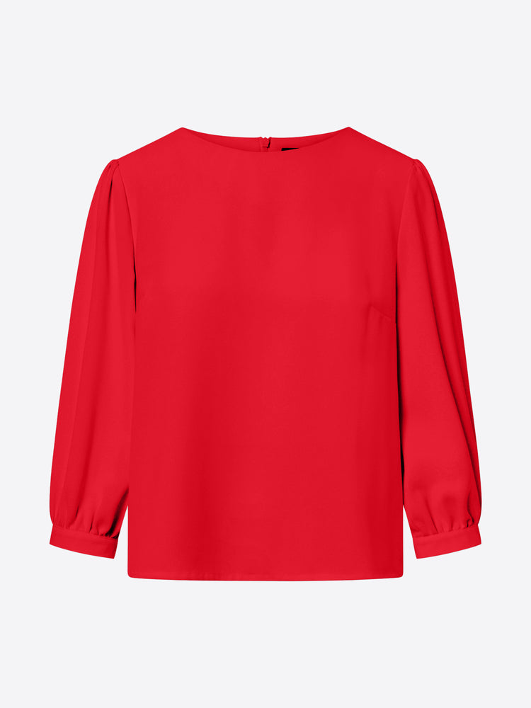 Blouse in soft recycled polyester from Jascha Stockholm. A-line model with three-quarter length light puff sleeves. The blouse has buttons at cuffs