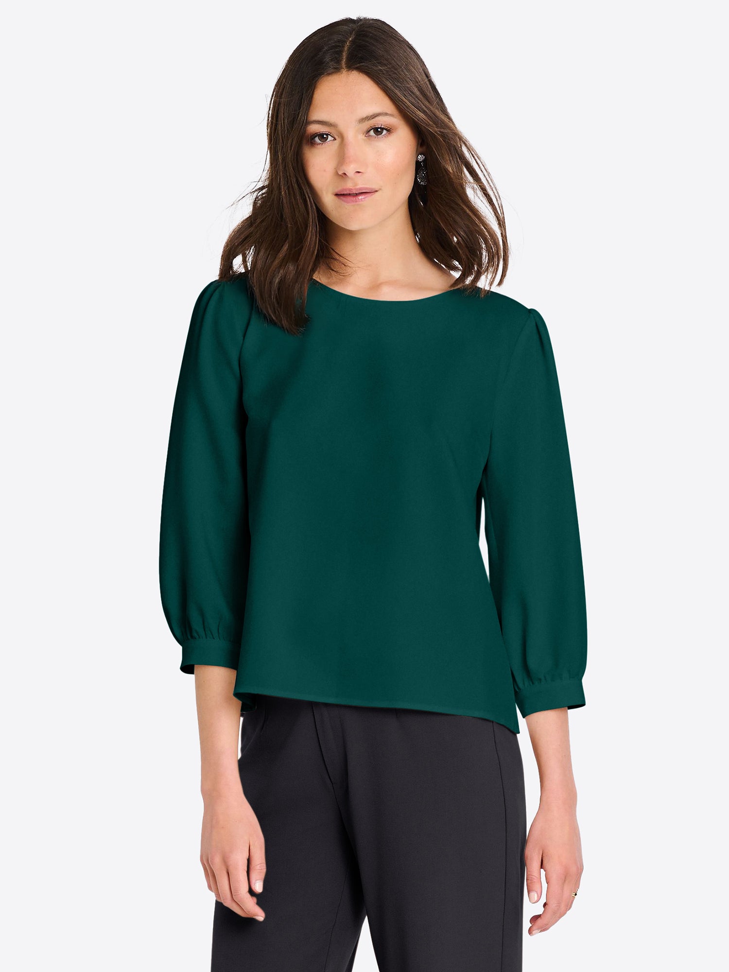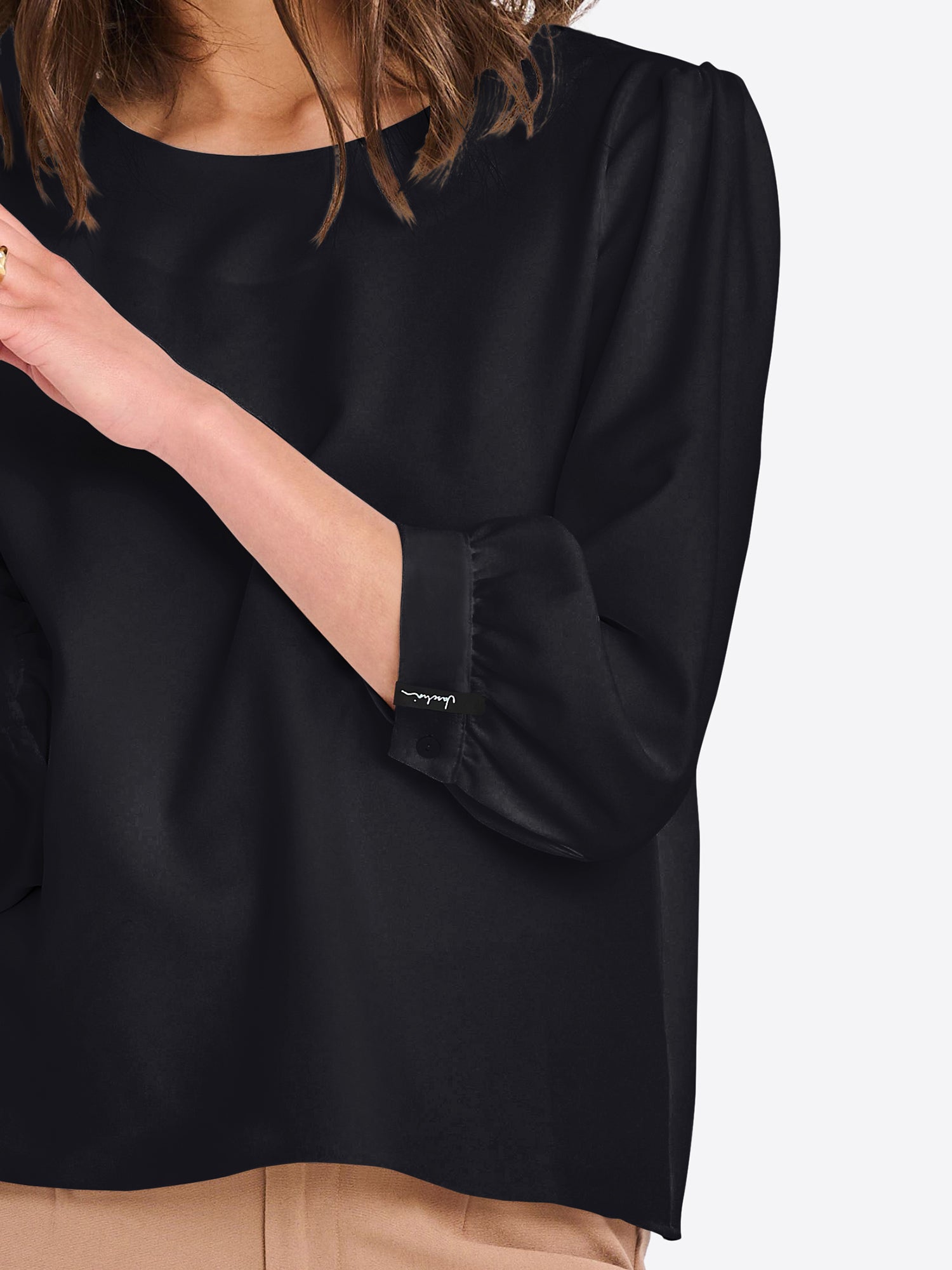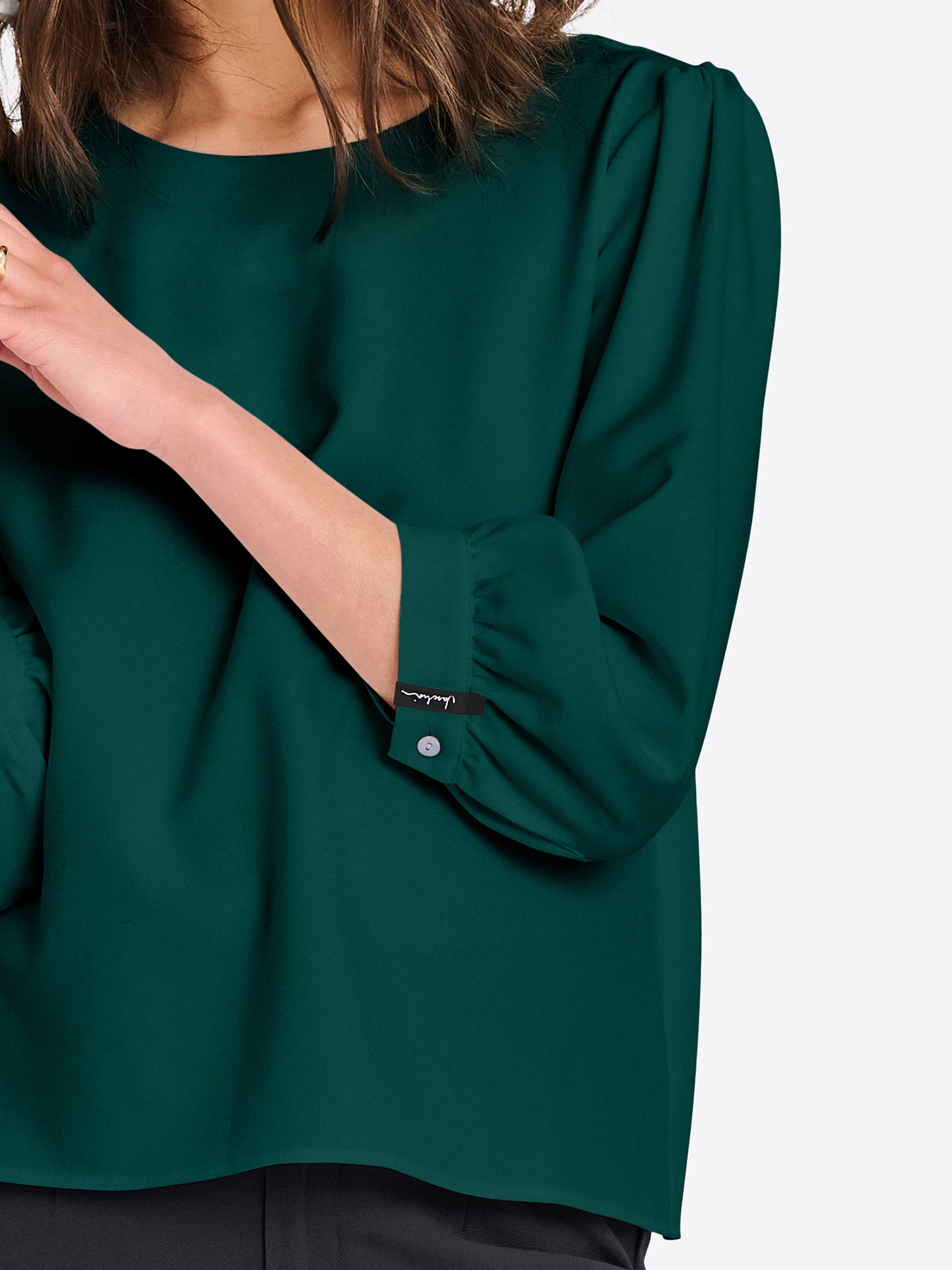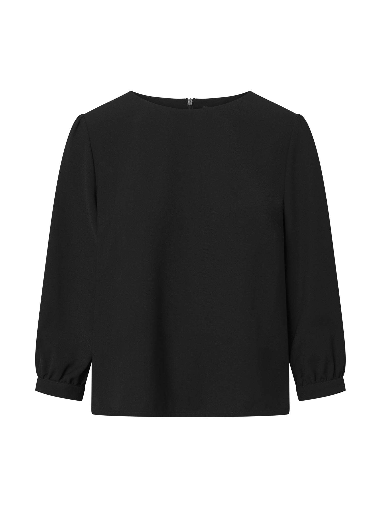 Blouse in soft recycled polyester from Jascha Stockholm. A-line model with three-quarter length light puff sleeves. The blouse has buttons at cuffs