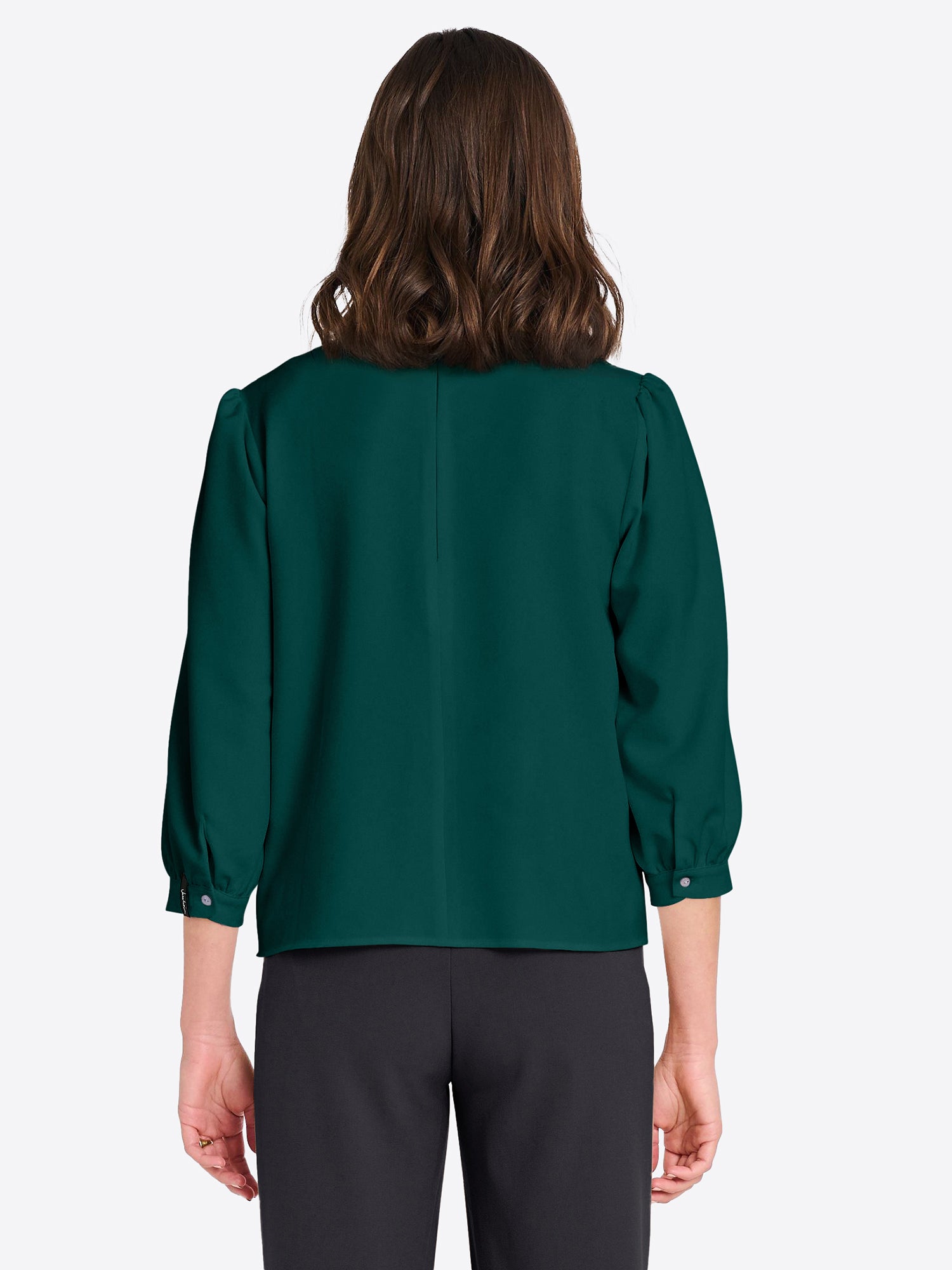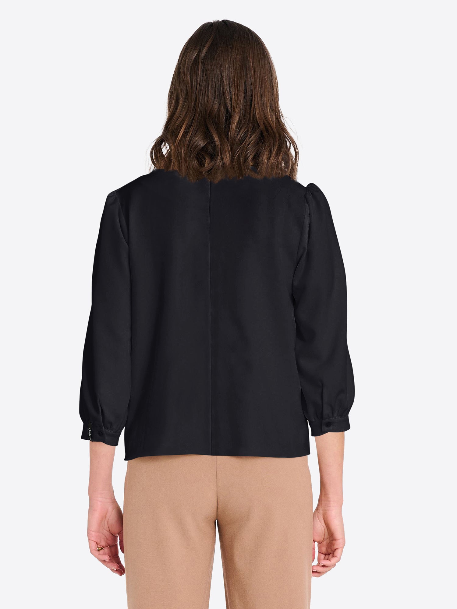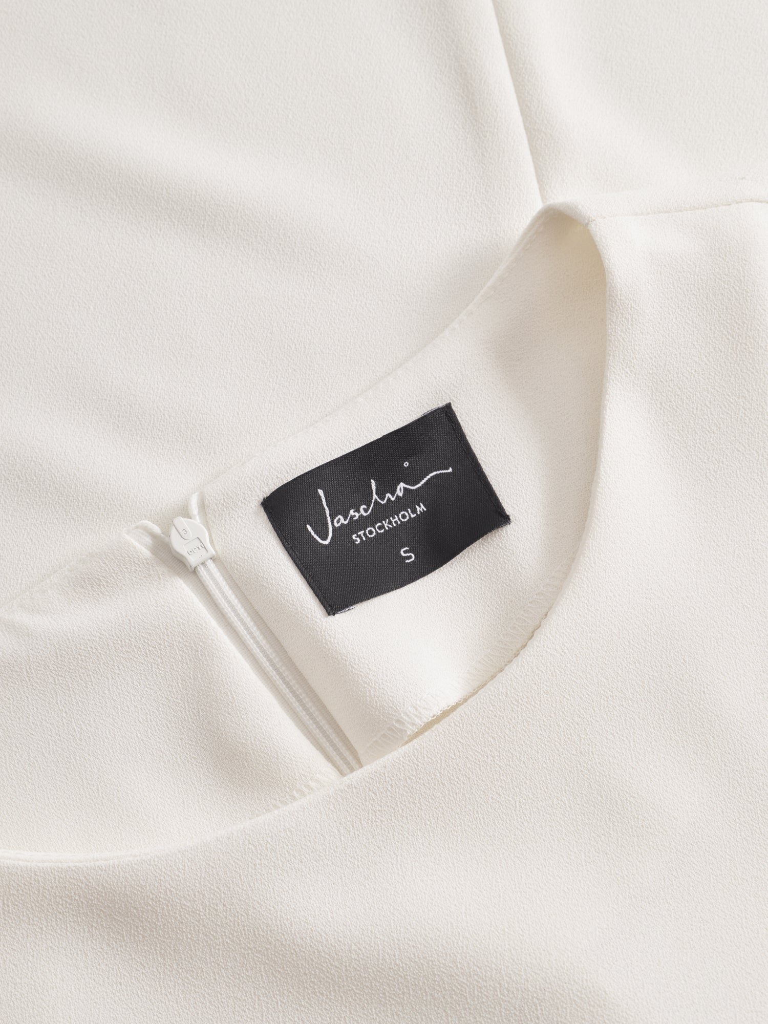 Blouse in soft recycled polyester from Jascha Stockholm. A-line model with three-quarter length light puff sleeves. The blouse has buttons at cuffs