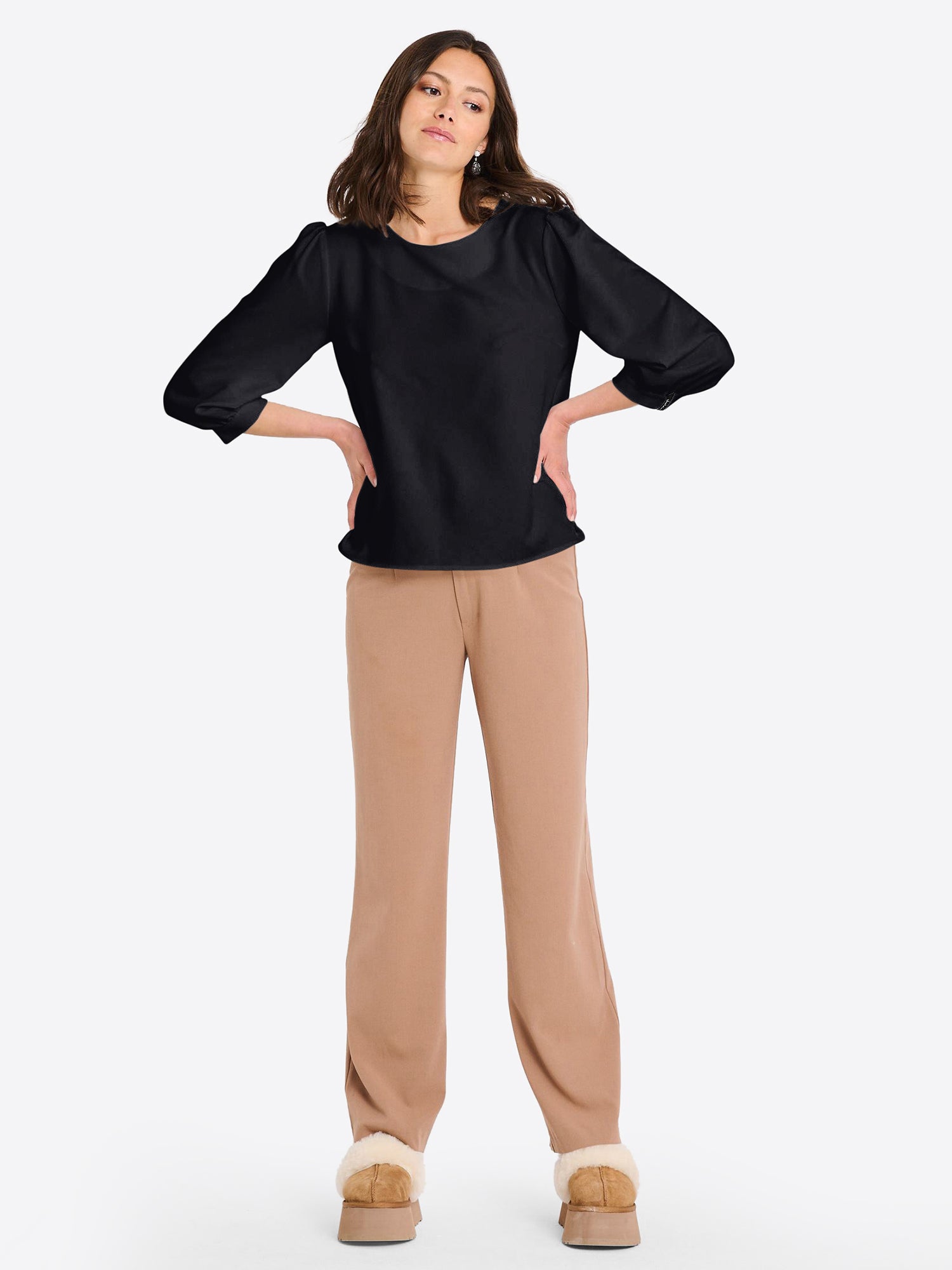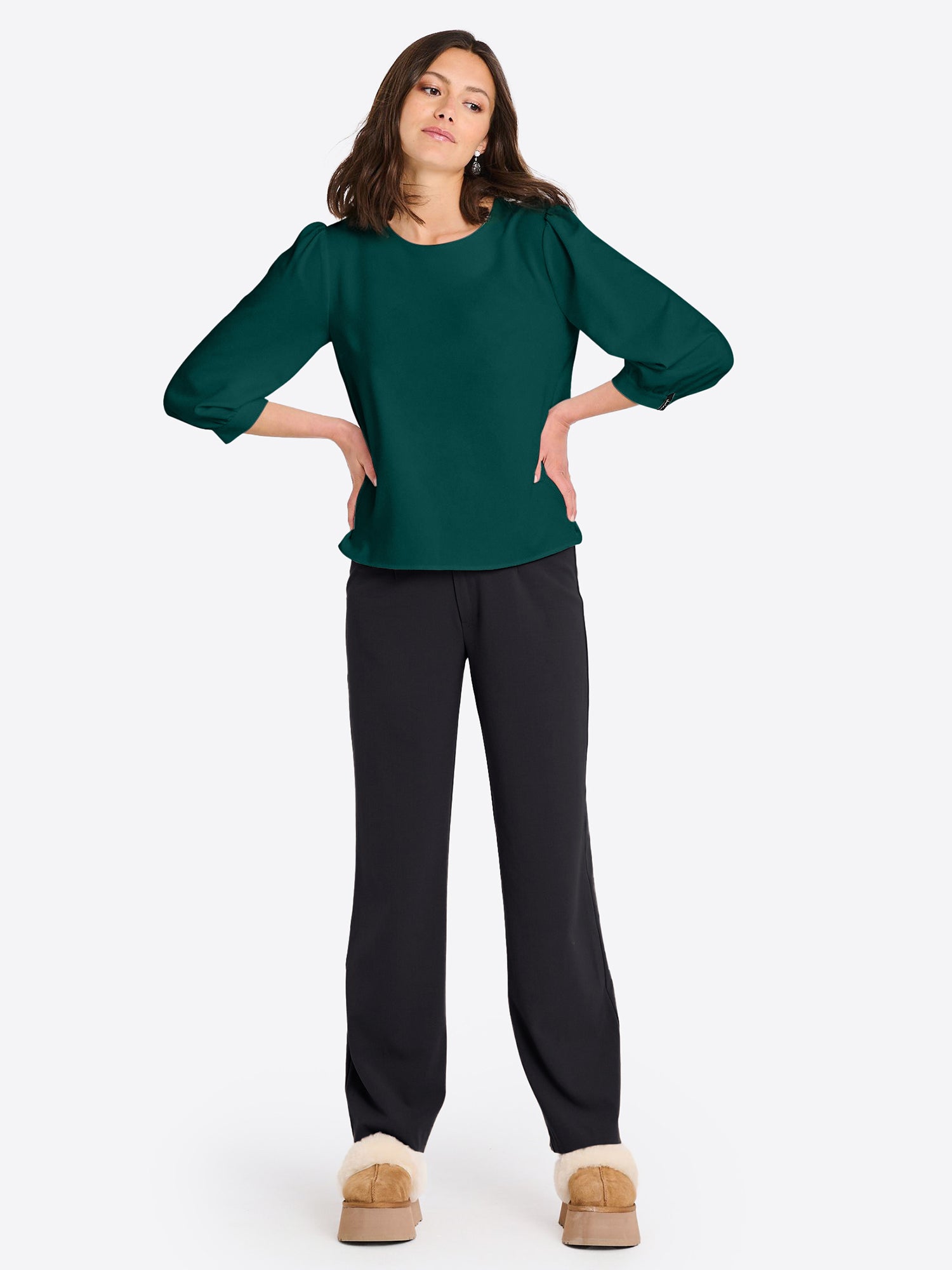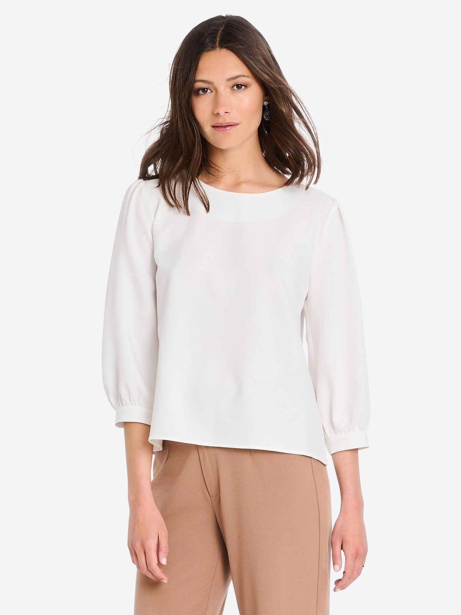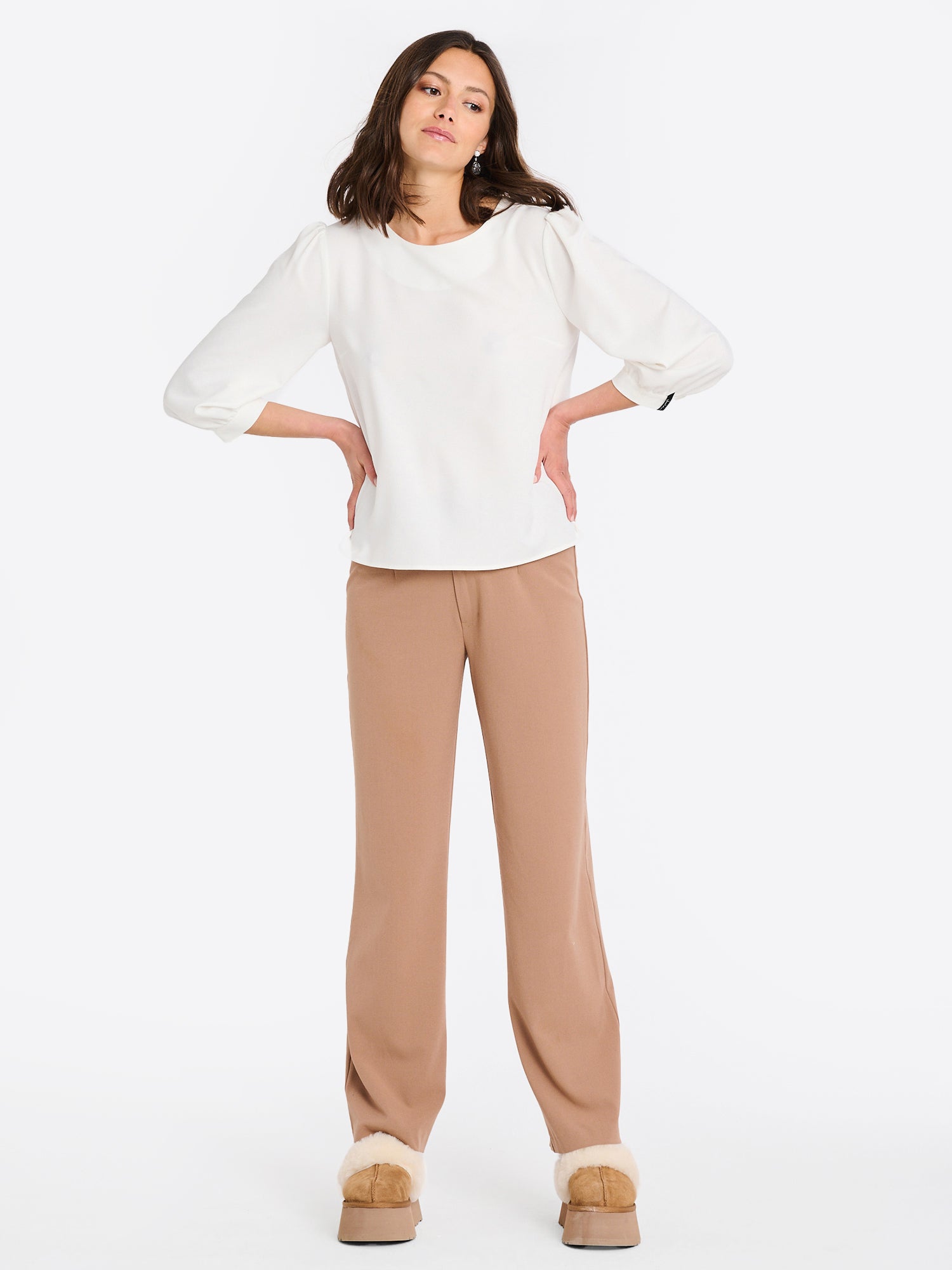 Blouse in soft recycled polyester from Jascha Stockholm. A-line model with three-quarter length light puff sleeves. The blouse has buttons at cuffs