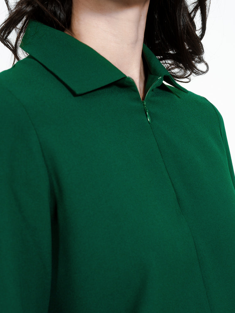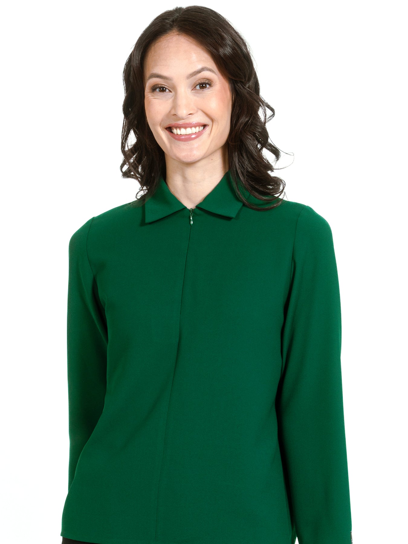 Blouse in soft recycled polyester from Jascha Stockholm. Short model with straight fit and long sleeves. The blouse has a shirt collar and a short and hidden zipper at front.