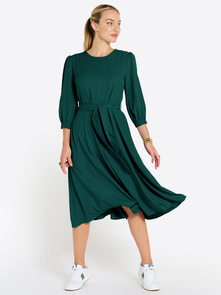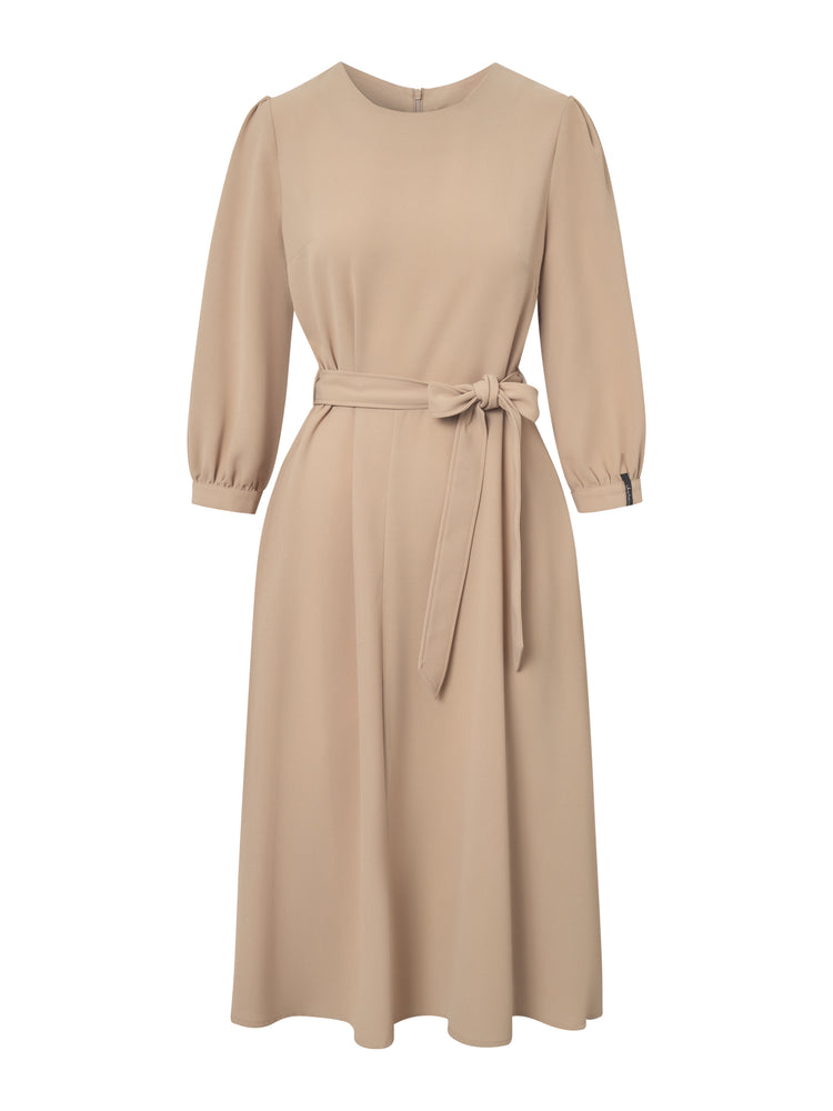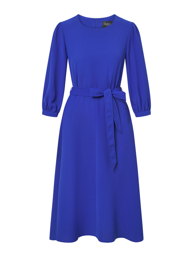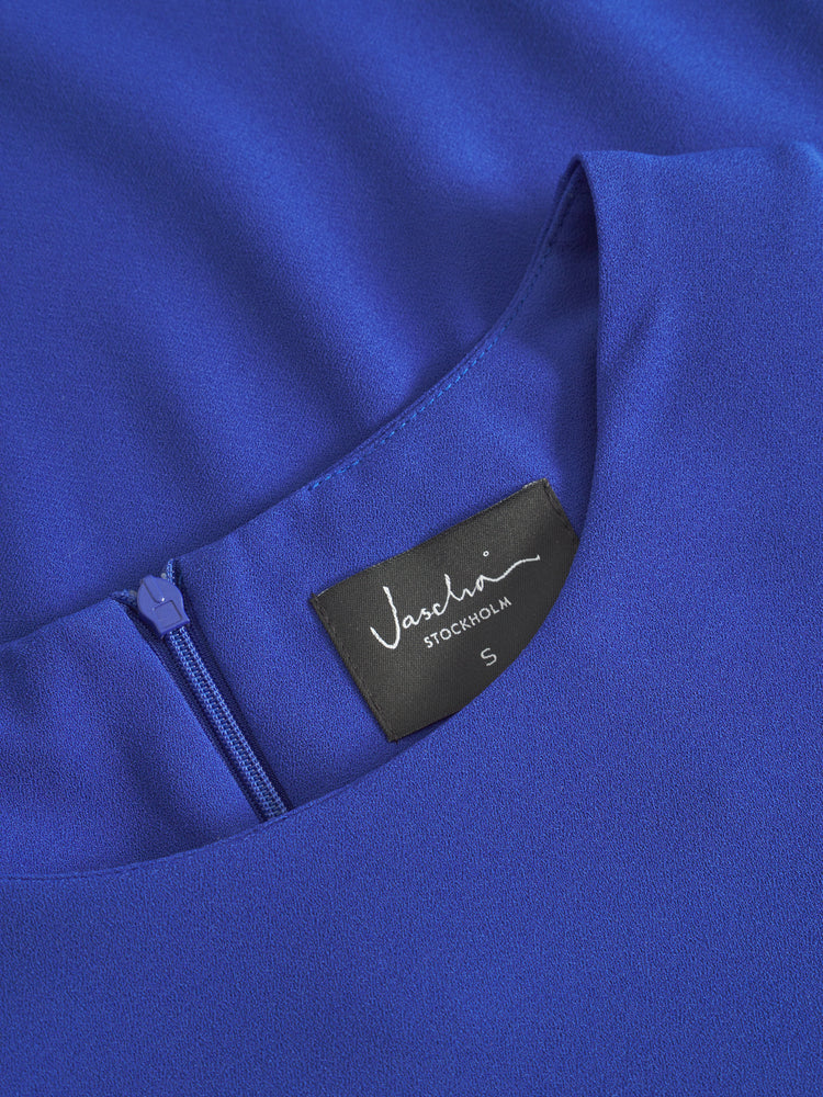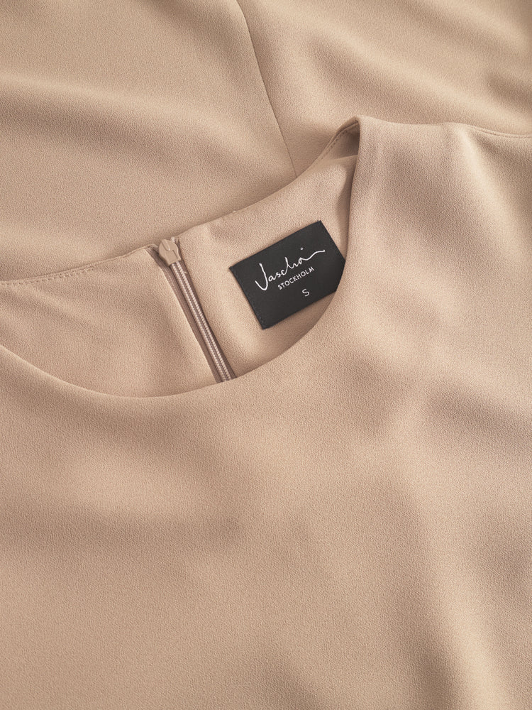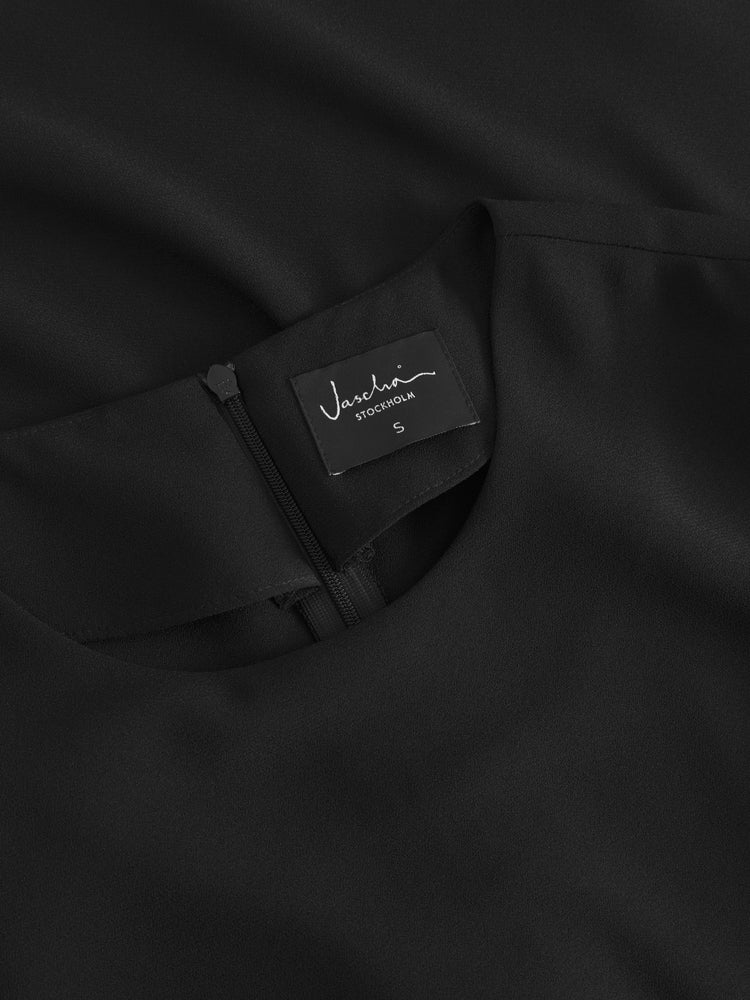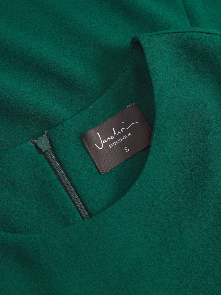 Dress in soft recycled polyester from Jascha Stockholm. A-line model with waistband and a rounded neckline. The dress has three-quarter length sleeves and buttons at cuffs as well as a hidden zipper at the back.