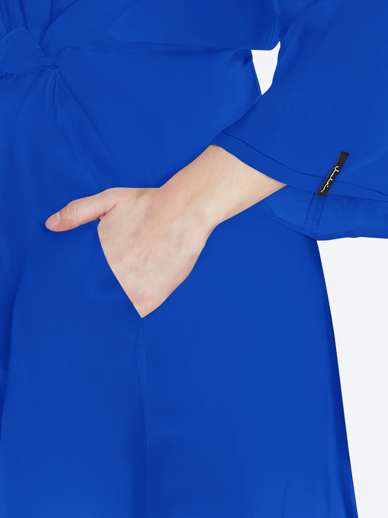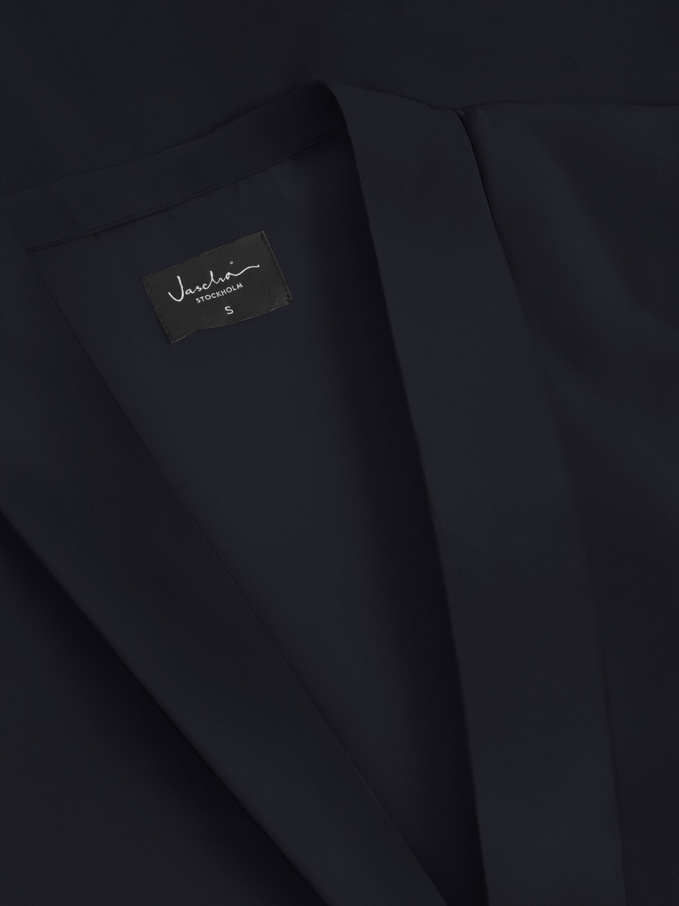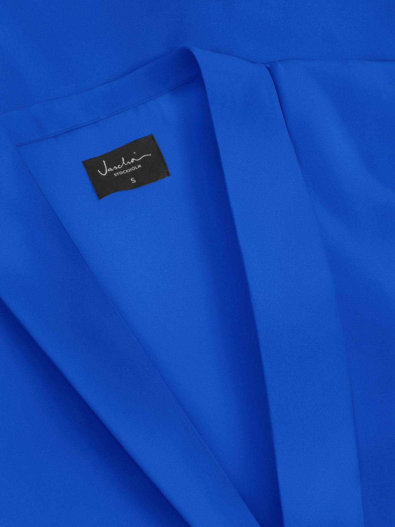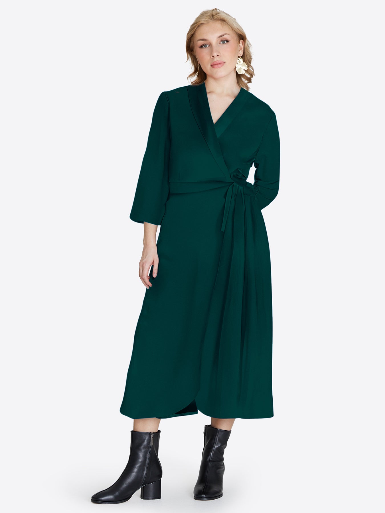 Dress in soft recycled polyester from Jascha Stockholm from Jascha Stockholm. Wrap around model with ancle length fit. The dress has a waist band and three-quarter length sleeves.