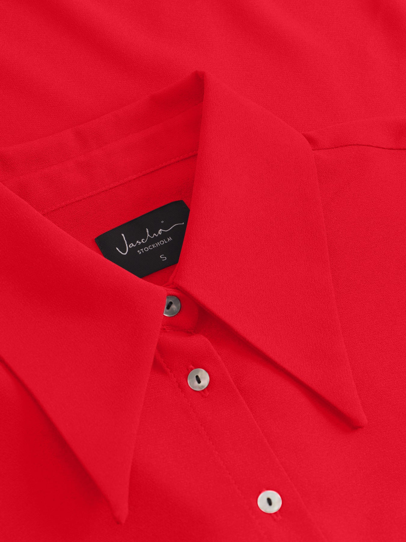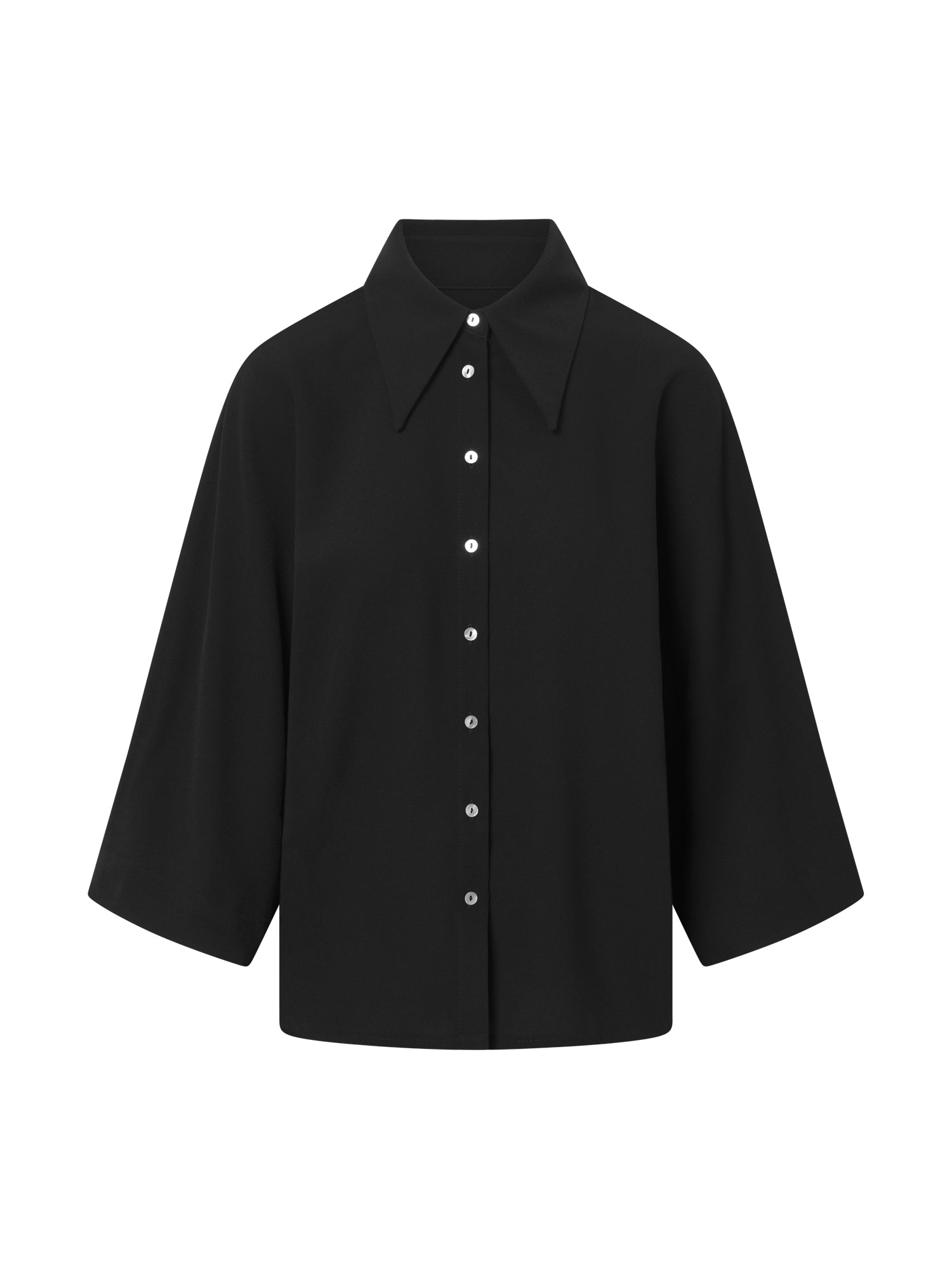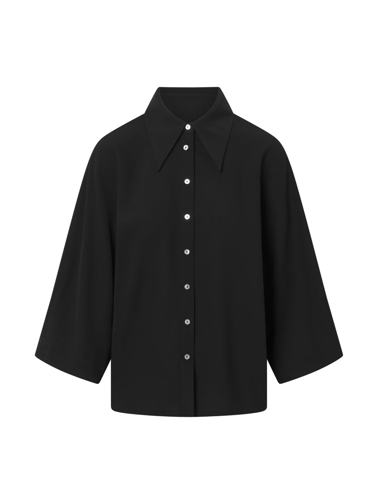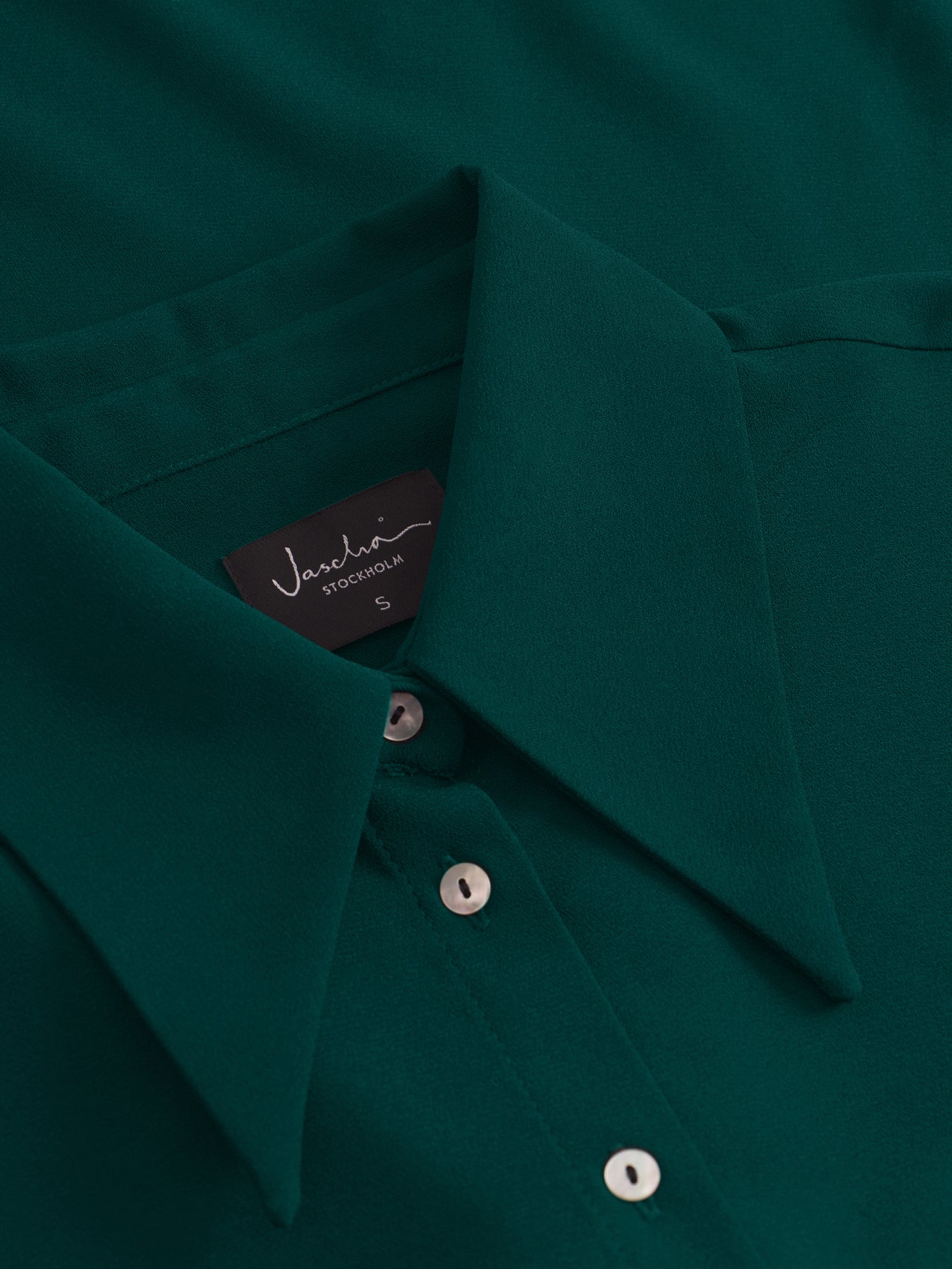 Shirt in soft recycled polyester from Jascha Stockholm. Straight model with button fastening at the front and three-quarter length wide sleeves.