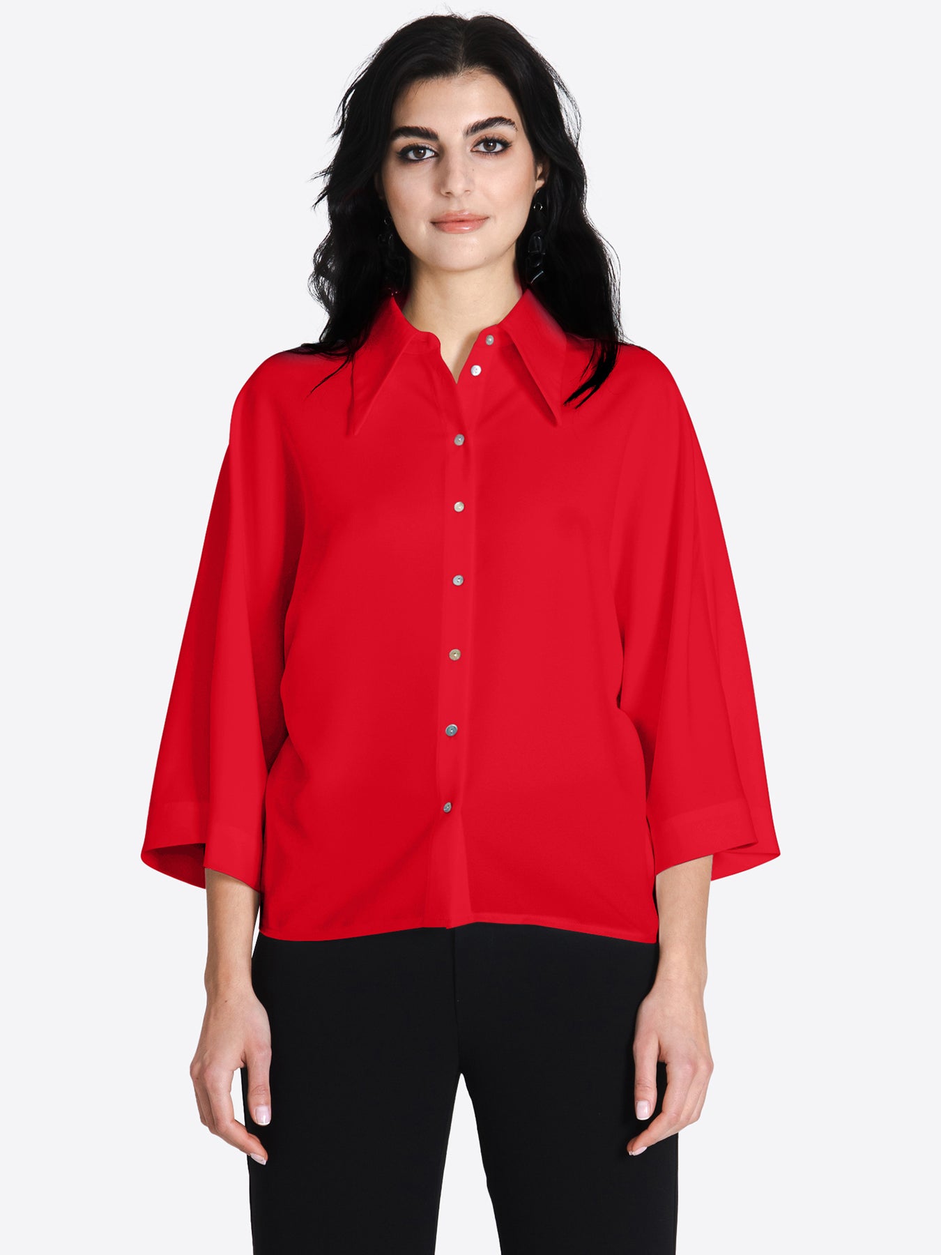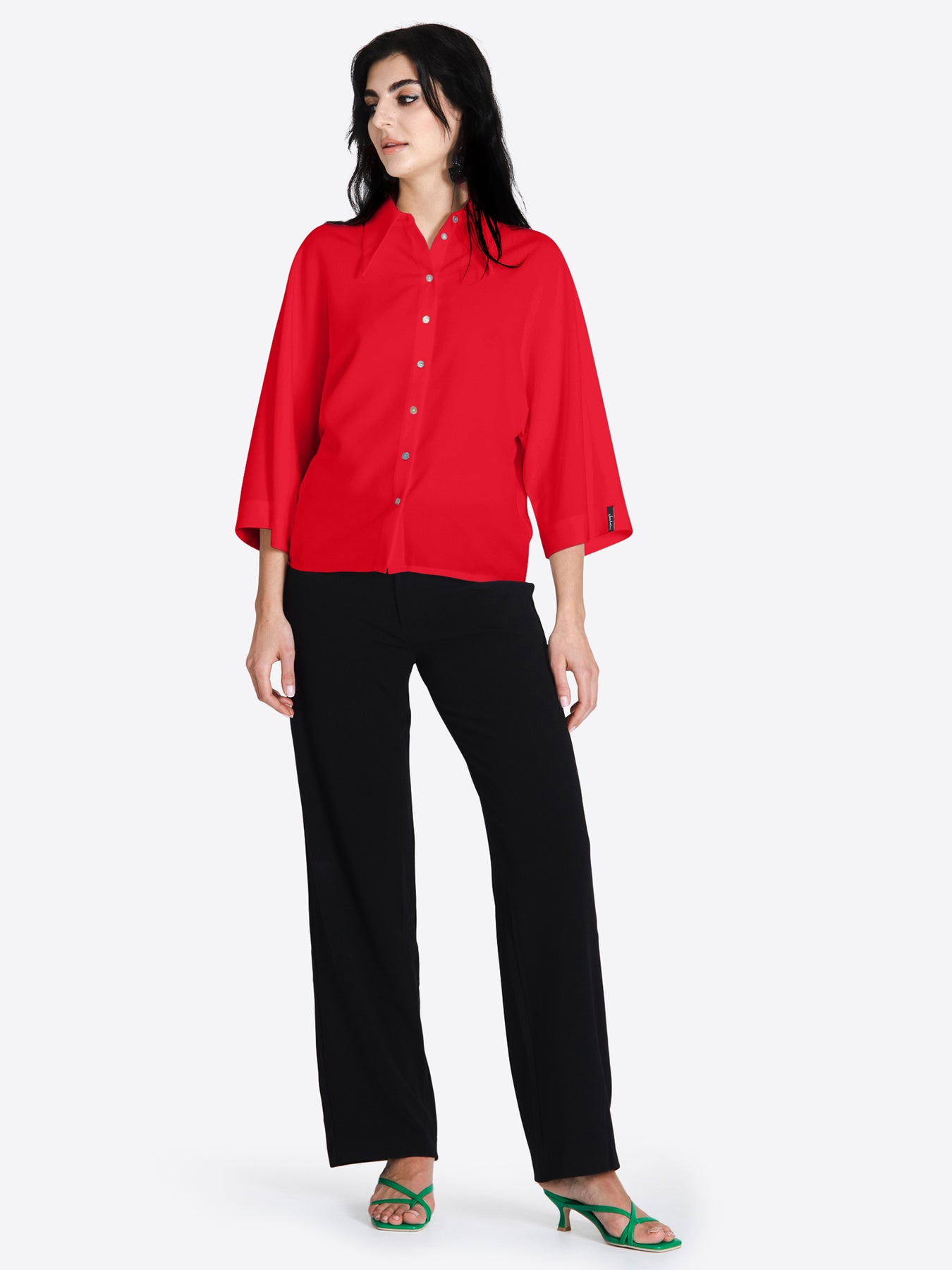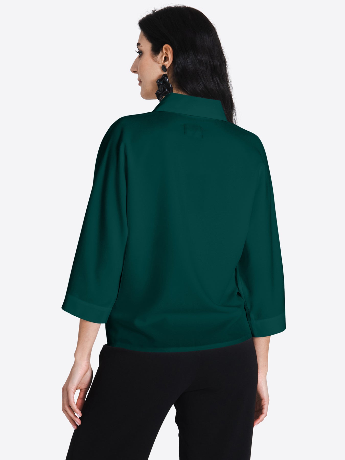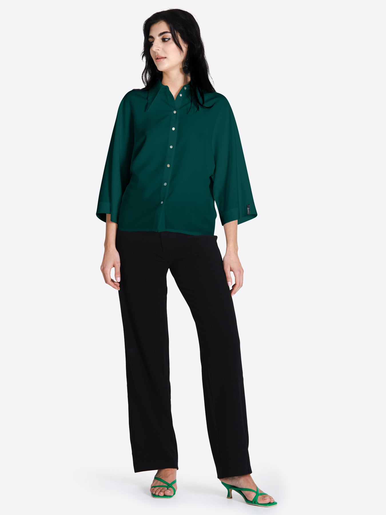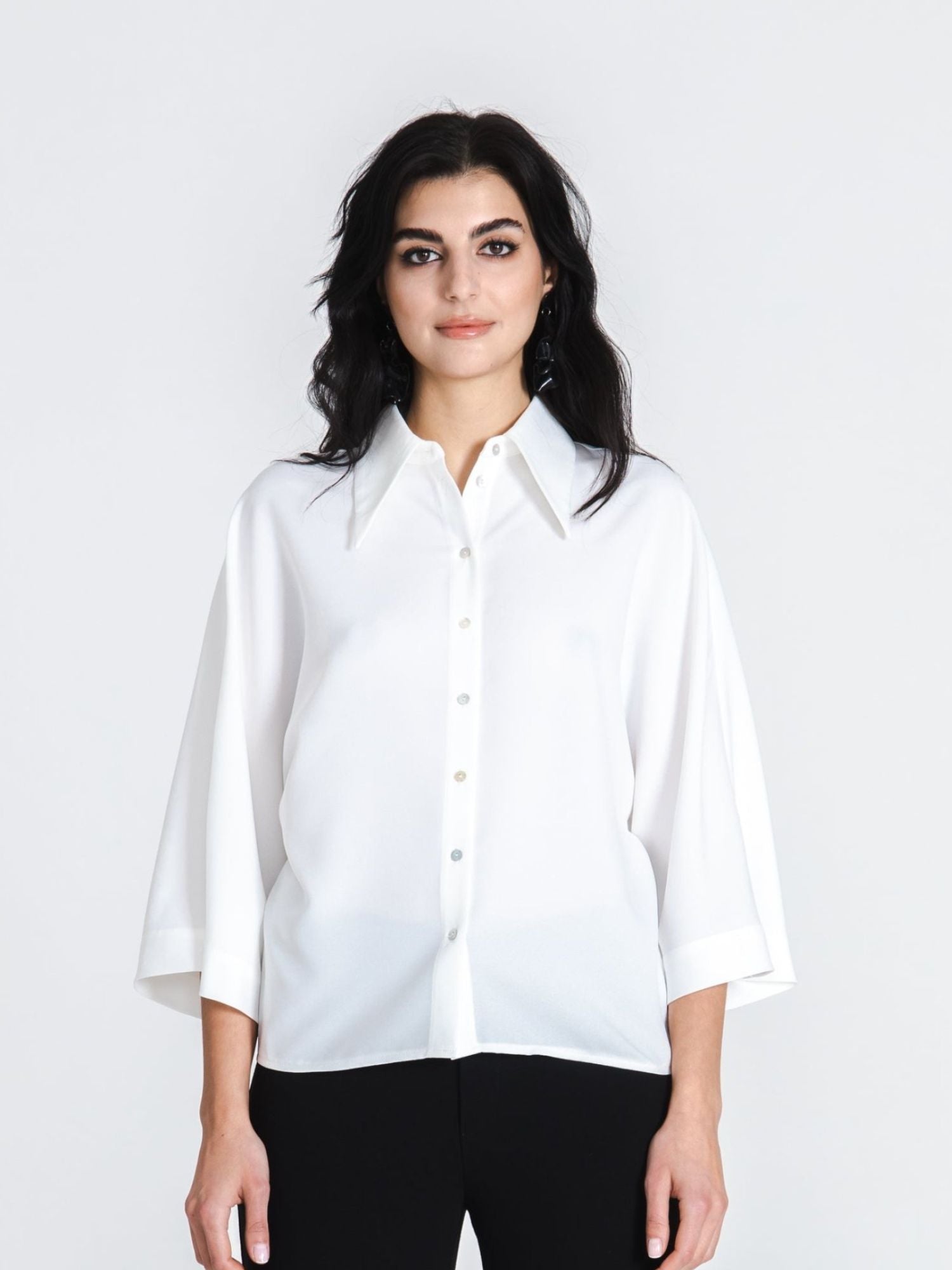 Shirt in soft recycled polyester from Jascha Stockholm. Straight model with button fastening at the front and three-quarter length wide sleeves.