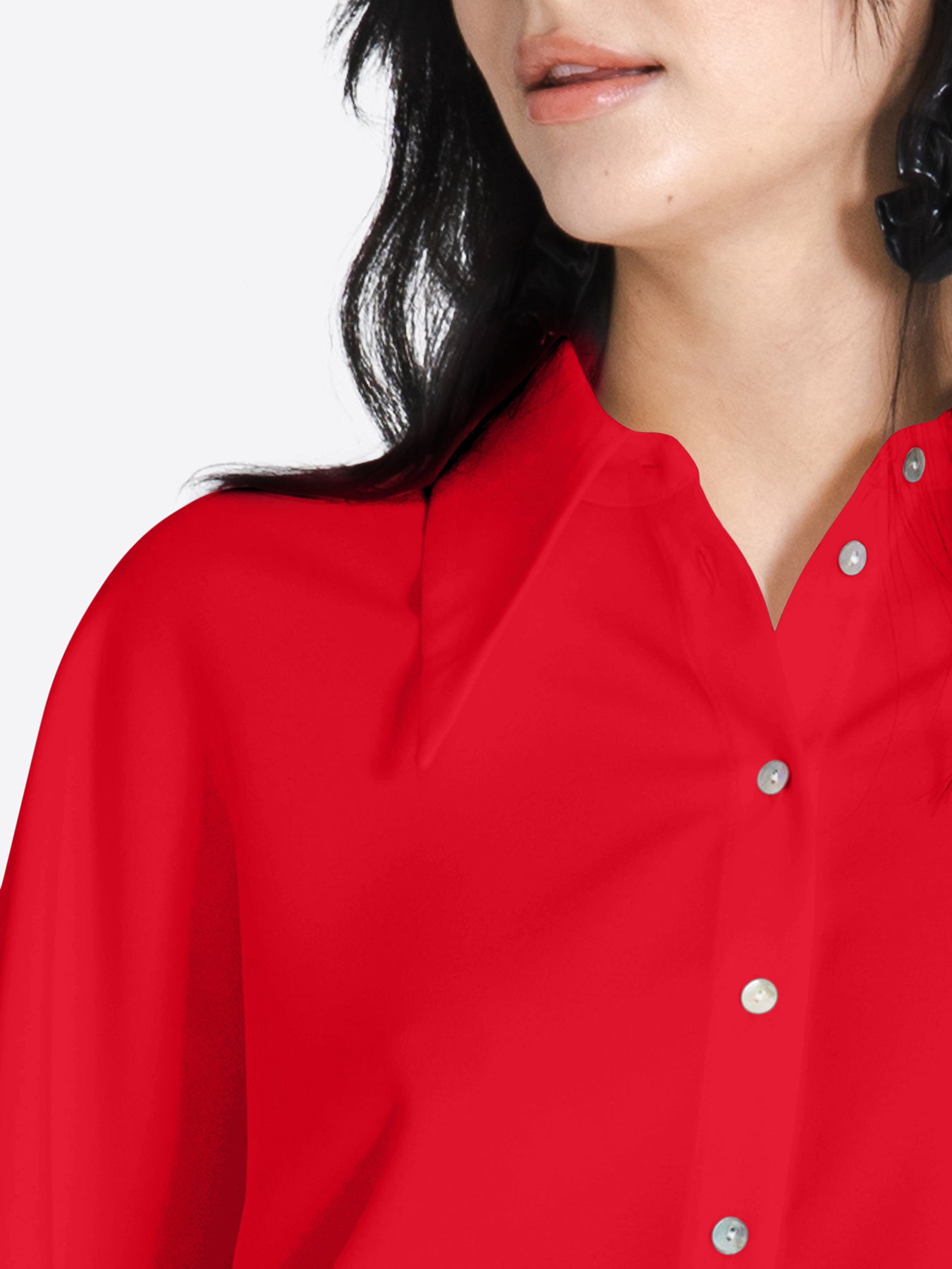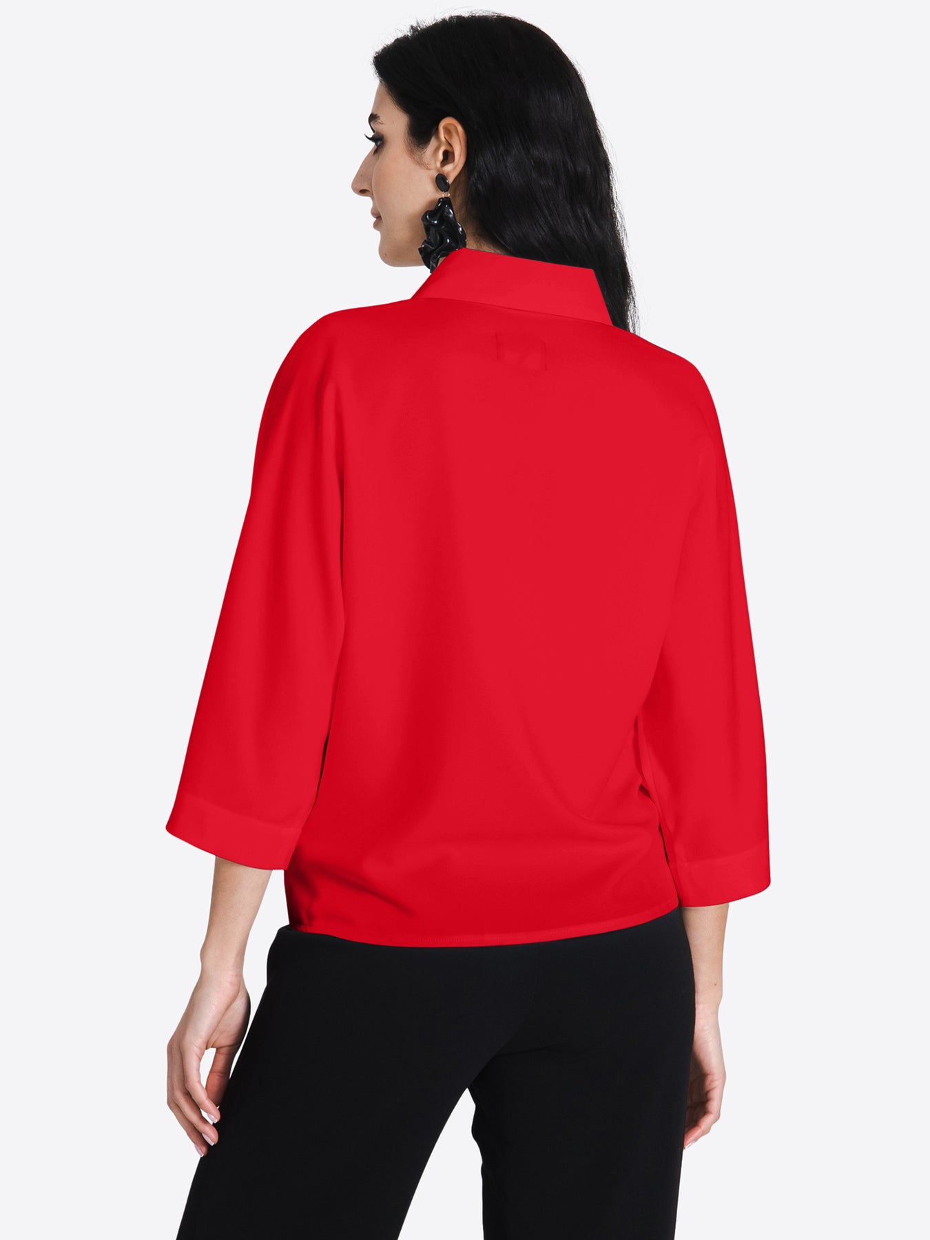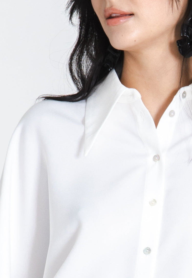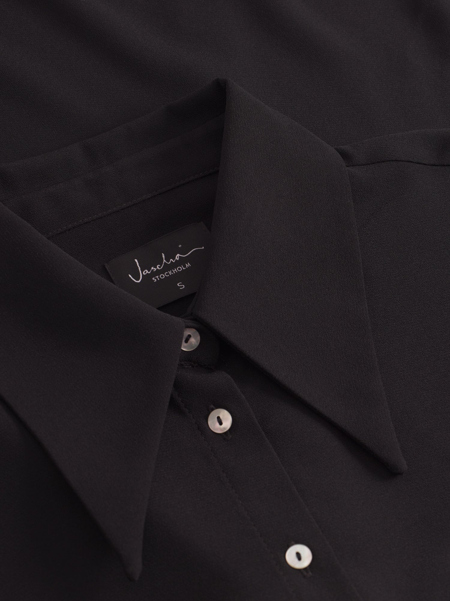 Shirt in soft recycled polyester from Jascha Stockholm. Straight model with button fastening at the front and three-quarter length wide sleeves.