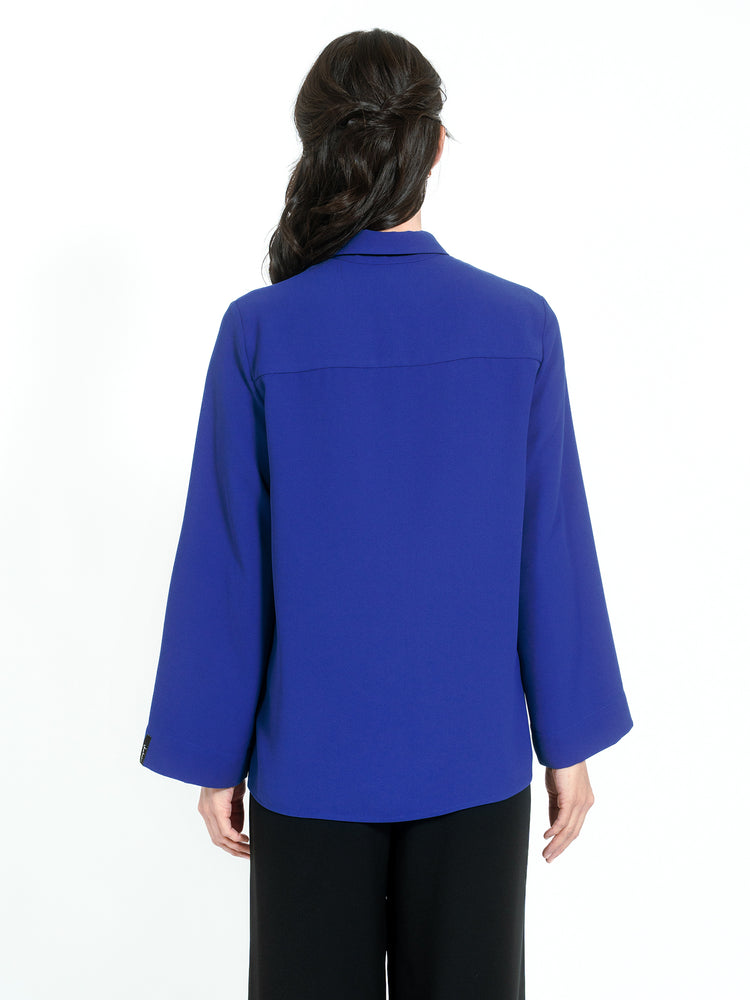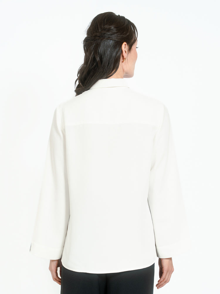 Shirt in soft recycled polyester from Jascha Stockholm. Loose fit model with buttons at the front and long, wide sleeves.