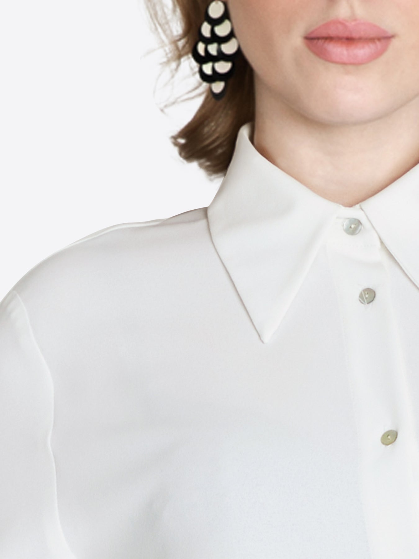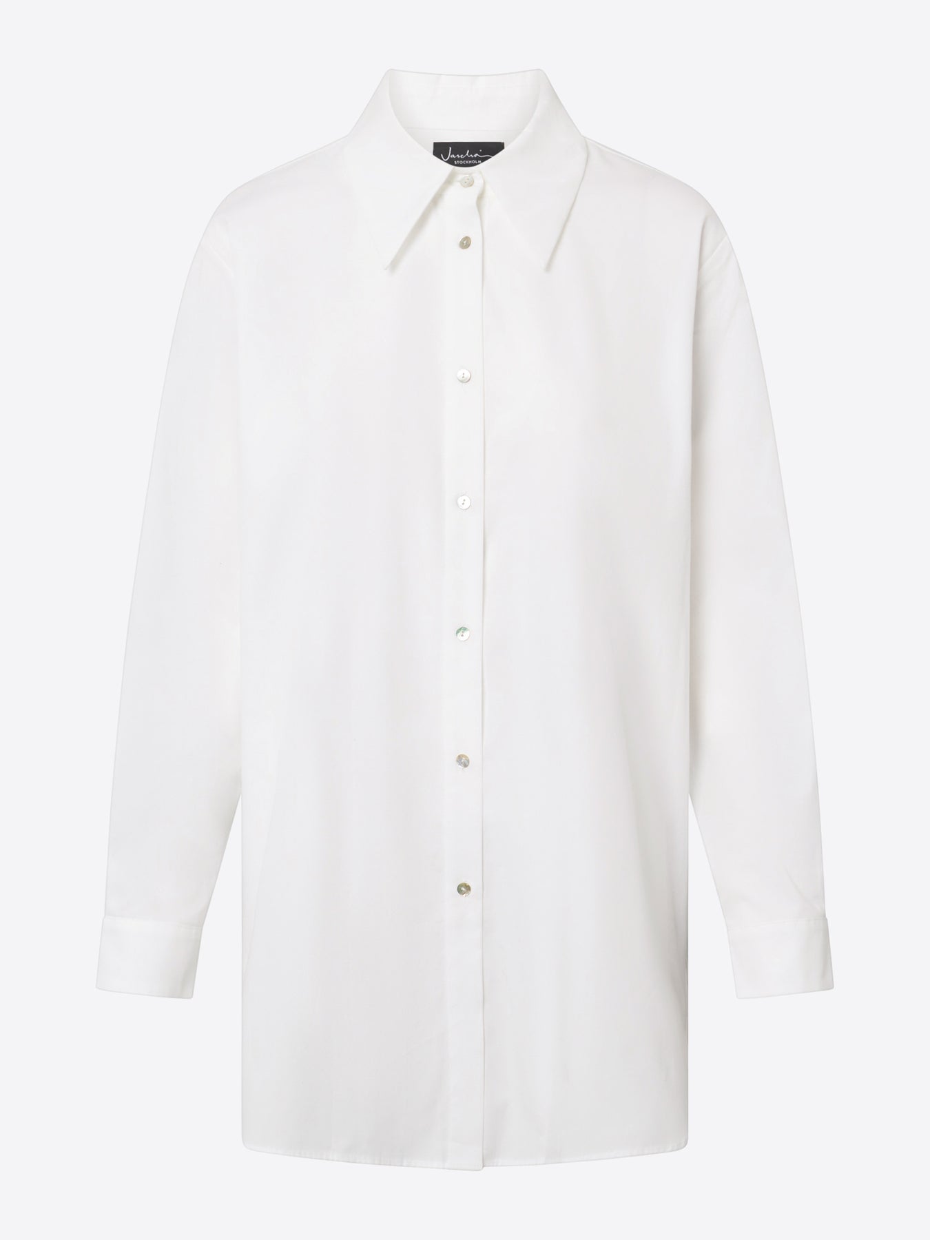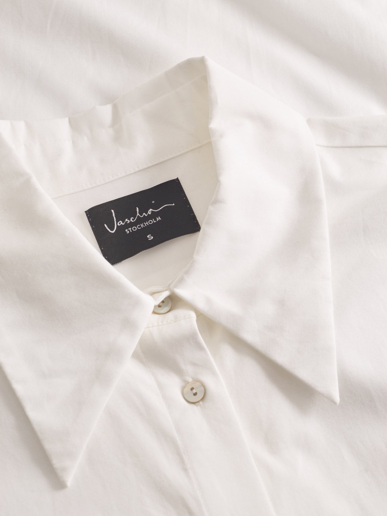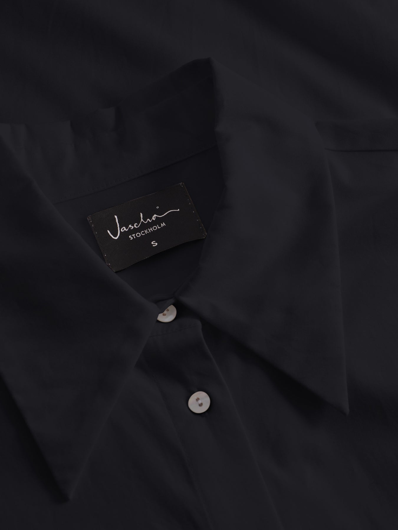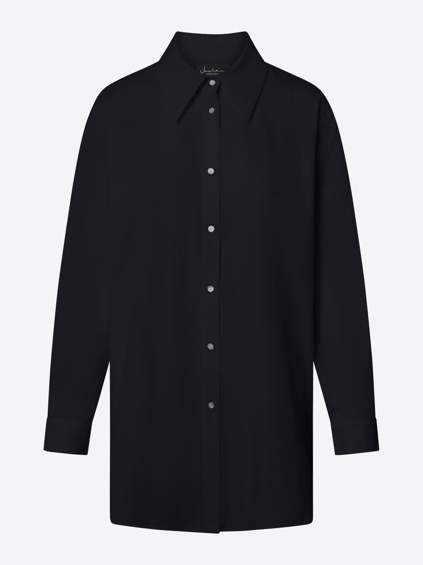 Shirt in soft recycled polyester from Jascha Stockholm. Oversized model and button closure at the front. The shirt has long sleeves with buttons at cuffs and short slits in the sides.