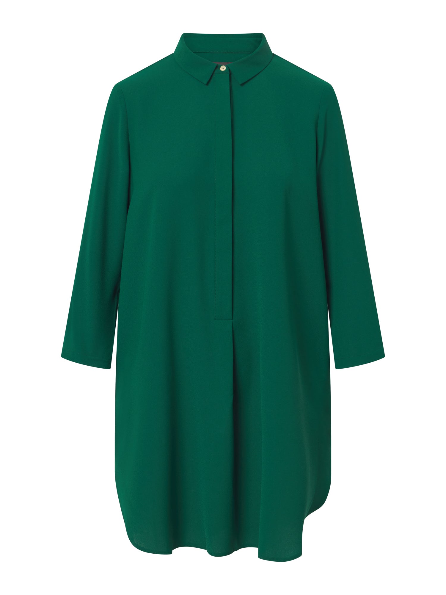Tunic in soft recycled polyester from Jascha Stockholm. Straight model with half-length button closure at the front and three-quarter length sleeves. The tunic is slightly shorter in the sides.